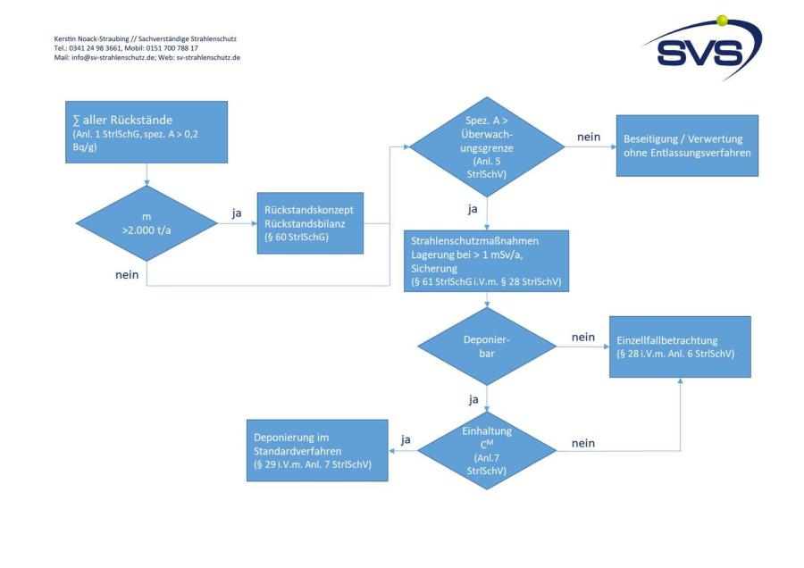 Im §§ 60 – 63 StrlSchG sowie im §§ 27 – 30 StrlSchV sind die Regelungen zum Umgang mit Rückständen enthalten. Die wesentlichen Punkte werden nachfolgend wiedergegeben.